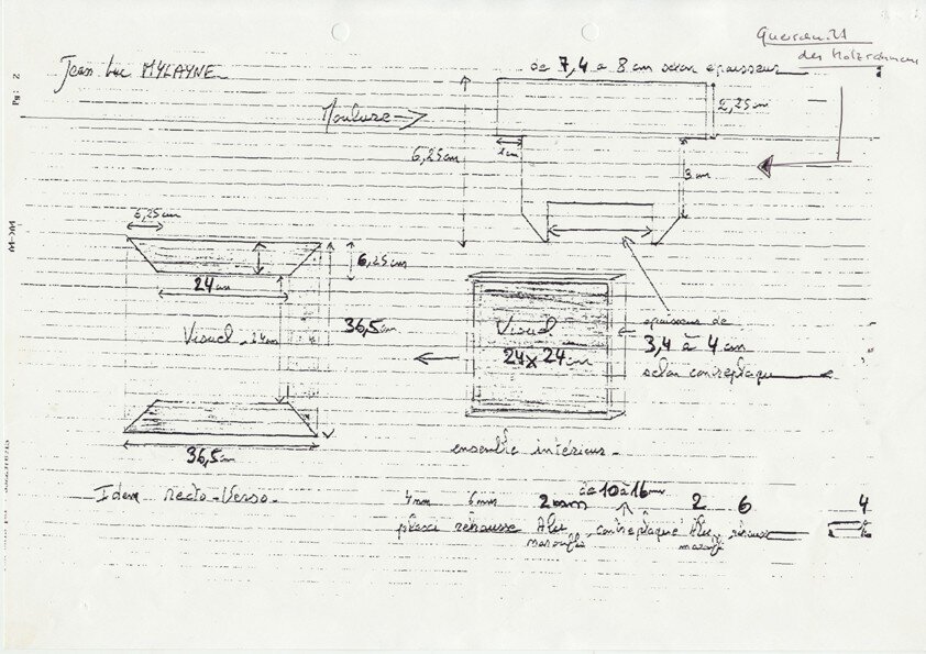 Jean-Luc Mylayne’s sketch for his Parkett edition. The image size corresponds to the hours of a day (24 x 24 cm) , the format of the whole frame to the days in year (36,5 x 36,5 cm).